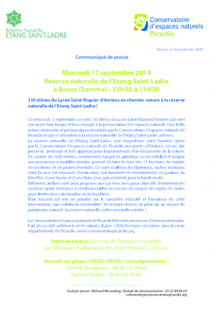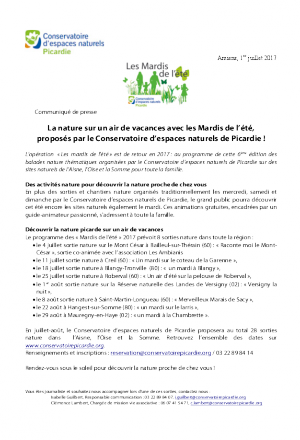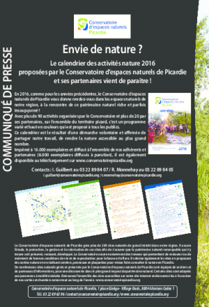 Vous trouverez ci-dessous en téléchargement la liste des communiqués de presse diffusés et initiés par le Conservatoire d'espaces naturels de Picardie.